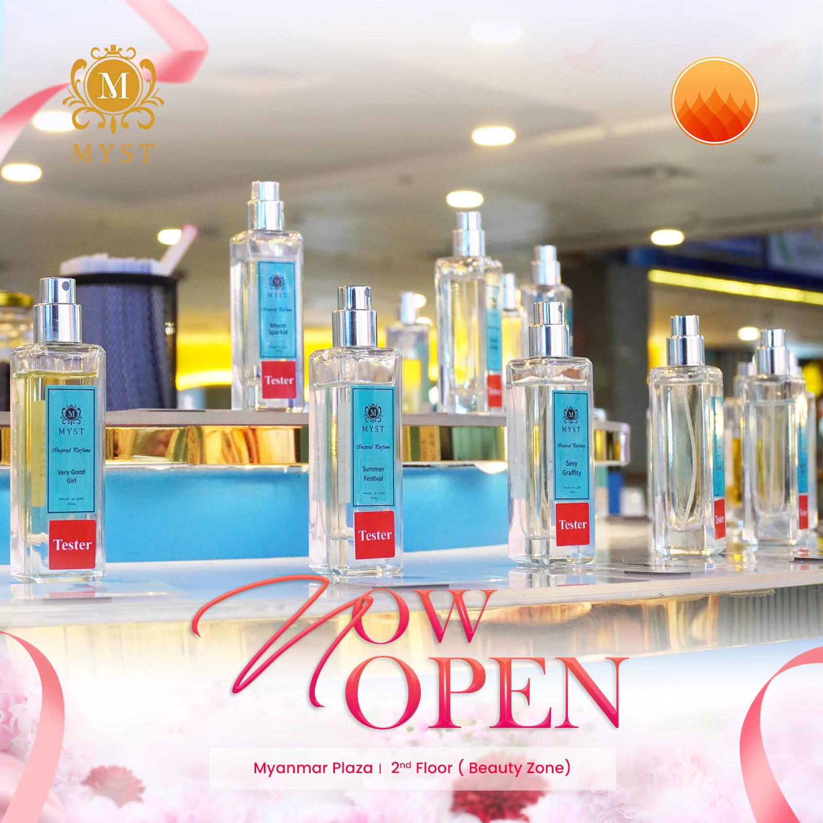 Discover the fragrance that speaks to your confidence with Myst Perfume, now open at the Myanmar Plaza, 2nd Floor (Beauty Zone).