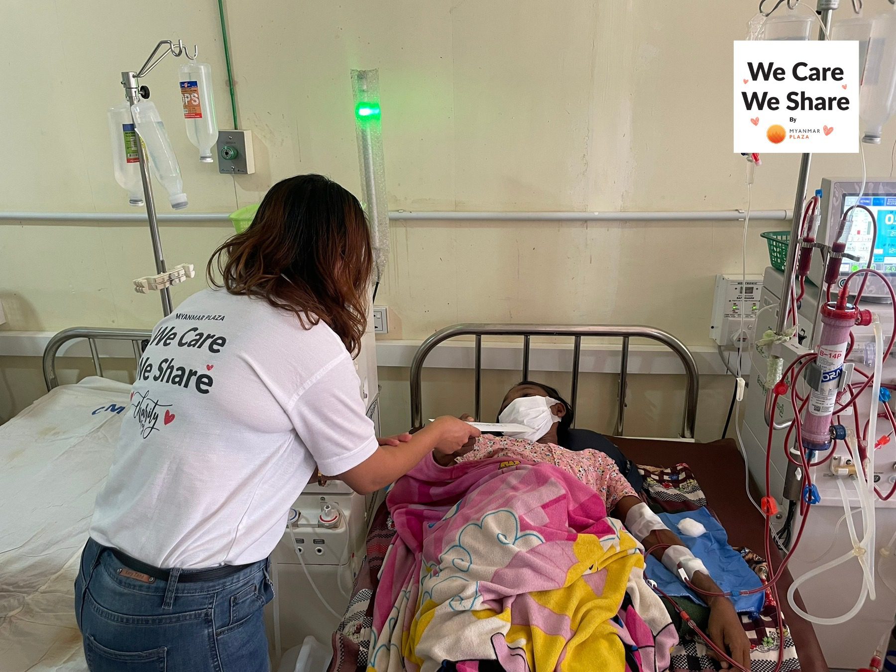 “We Care, We Share” by Myanmar Plaza made a New Year donation of 4,500,000 MMK to 90 patients on kidney dialysis, 50,000 MMK for each, and 1,500,000 MMK to meet the medical needs of North Oakkalapa General Hospital in sympathy. We also donated to the 13 patients who were receiving intensive treatment due to cancer.